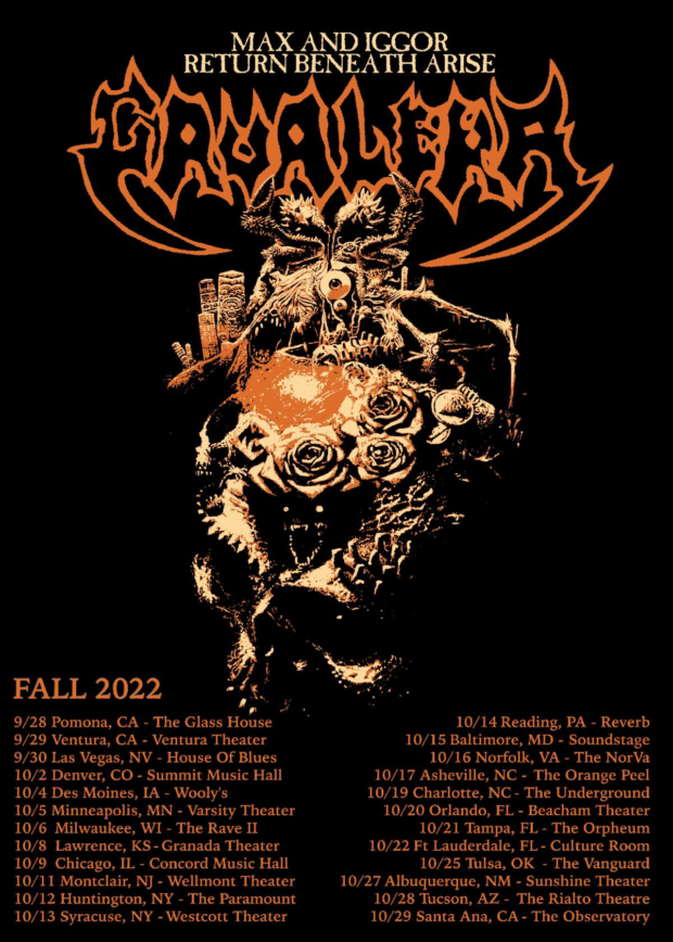 Celebrate with original founding members of influential heavy metal legends and RIAA Gold-Certified Sepultura. Max & Iggor Cavalera will perform a hybrid setlist exclusively of cuts from these two iconic albums Beneath the Remains and Arise. This second leg of the tour runs throughout the United States in September and October.