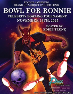 Bidding is now under way on eBay for a chance to bowl on the celebrity bowling team captained by broadcast personality Eddie Trunk at the BOWL FOR RONNIE Celebrity Bowling Party on Thursday, November 13, 2025 at PINZ Bowling Center in Studio City, California. Trunk, who is heard on SiriusXM’s 103 Faction Talk channel, will once again host the event benefiting the Ronnie James Dio Stand Up and Shout Cancer Fund (www.diocancerfund.org).